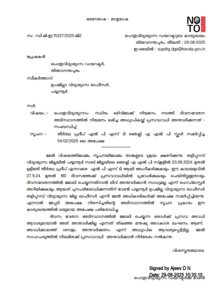 PERMANENT POST DAILY WAGE MATERNITY LEAVE Leave